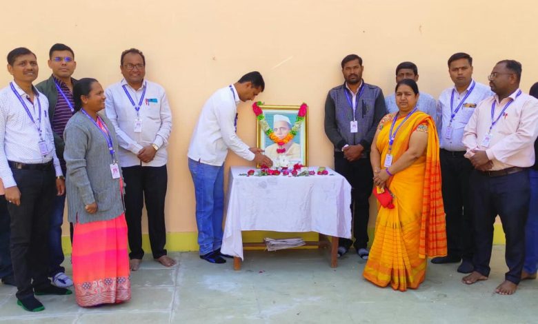 ‘खरा तो एकची धर्म जगाला प्रेम अर्पावे’ हि प्रार्थना ज्यांनी जगाला अर्पण केली असे मराठी साहित्यातील प्रसिद्ध लेखक, आदर्श शिक्षक, सामाजिक कार्यकर्ता व स्वातंत्र्यसैनिक परमपूजनीय पांडुरंग सदाशिव साने उर्फ साने गुरुजी यांच्या प्रतिमेला पुष्पहार अर्पण करून अभिवादन करण्यात आले.