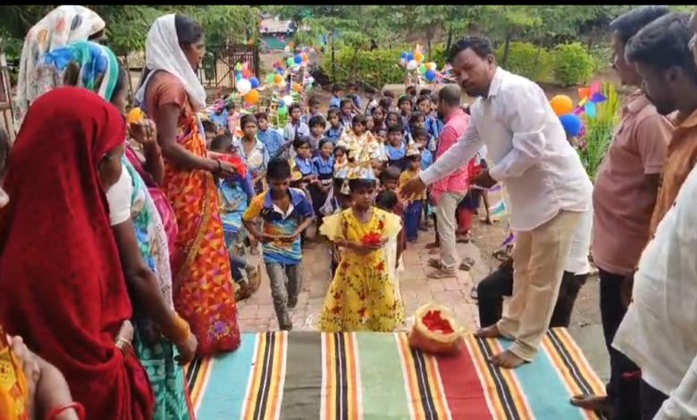 आज दि,15 जून 2024 , वार शनिवार रोजी जिल्हा परिषद प्राथमिक शाळा तताणी केंद्र कुमसाडी ता कळवण जी नासिक या शाळेचा पहिला दिवस शाळा प्रवेशा उत्सव व नवगतांचे इयत्ता पहिलीत दाखल होणाऱ्या बालकांचे तसेच इयत्ता पाचवीसाठी नवीन वर्ग चालू केले तसेच आज शाळेचा पहिला दिवस म्हणून व नवीन विद्यार्थी यांचं आदिवासी पारंपारिक सांभाळ नृत्य लावून तसेच लहान मुलांना फुल गुच्छ व पुस्तके देऊन नवीन विद्यार्थ्यांचे औक्षण करून त्यांचे शाळेतील पहिले पाऊल म्हणून पावलांचे ठसे घेऊन मोठ्या उत्साहात स्वागत करण्यात आले तसेच प्रवेश करताना सर्व महापुरुषांचे फोटो यांना पुष्पहार करून शाळेत प्रवेश करण्यात आले आणि शालेय समिती तसेच गावातील तरुण मित्र मंडळ आणि शिक्षक यांनी सुद्धा सांभाळाच्या तालावर ठेका धरला व मोठ्या उत्साहात शाळेचा पहिला दिवस साजरा करण्यात आला या ठिकाणी उपस्थित, अखिल भारतीय आदिवासी विद्यार्थी महासंघ महाराष्ट्र प्रदेश युवा अध्यक्ष सोनू भाऊ गायकवाड,व शाळेचे मुख्याध्यापक पवार सर व शिक्षक साळुंके सर , सरपंच, सजन राऊत, शाळा समिती अध्यक्ष नवनाथ पवार, उपाध्यक्ष राधा राऊत, व धनराज साबळे, हिरामण बागुल, त्र्यंबक वाघमारे, सदाशिव राऊत, शिवाजी राऊत,माया वाघमारे,आदी गावकरी उपस्थित होते..