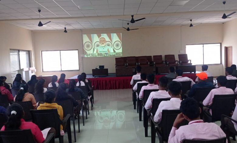 लासलगाव ( ) येथील नूतन विद्या प्रसारक मंडळ संचलित कला, वाणिज्य व विज्ञान महाविद्यालयात प्राचार्य डॉ आदिनाथ मोरे यांच्या मार्गदर्शनाखाली राष्ट्रीय सेवा योजना विभागाच्या वतीने Viksit Bharat@2047 : Vioce of Youth या उपक्रमाच आयोजन करण्यात आले. माननीय पंतप्रधान यांच्या उपस्थितीत दिनांक 11 डिसेंबर 2023 रोजी सकाळी 10.30 वाजता वेब लिंक द्वारे या उपक्रमाच प्रसारण विद्यार्थ्यांना दाखविण्यात आले याप्रसंगी 200 विद्यार्थी व शिक्षक उपस्थित होते.